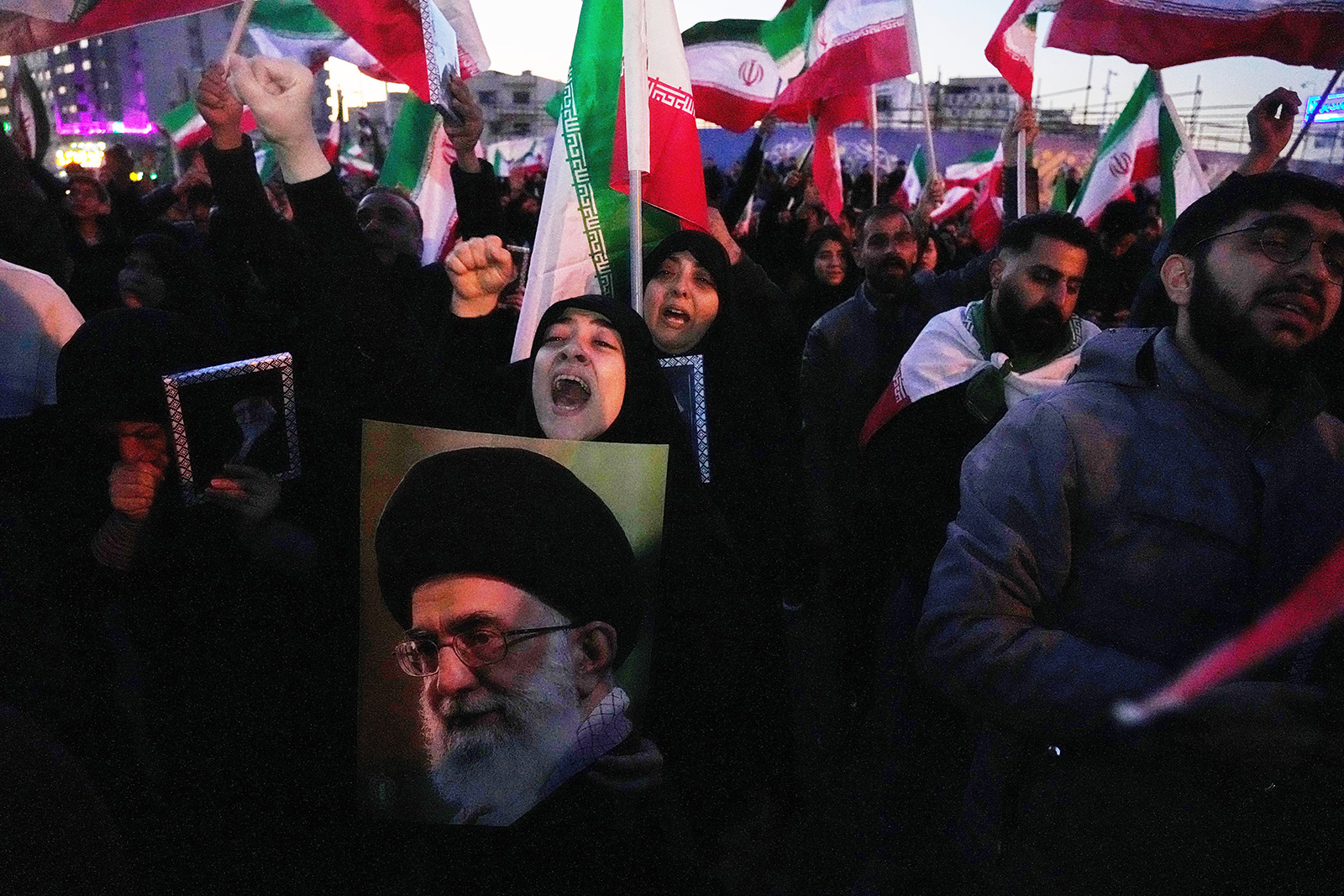 Girls nasty a avenue below a giant banner showing palms firmly keeping Iranian flags as a trace of patriotism in Tehran, Iran, Jan. 14, 2026. (AP Converse/Vahid Salemi)