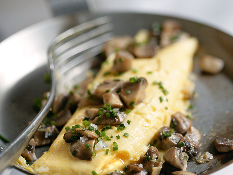 - Tilt the pan downward holding the form out upward. Roll the omelet over itself, from prime to bottom, with a fork.